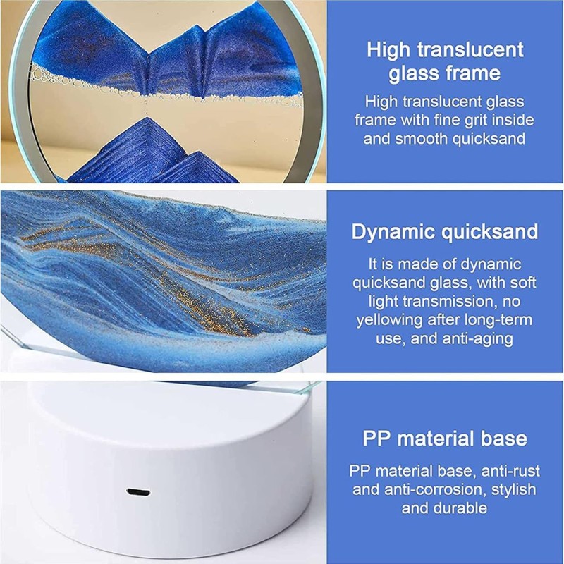 প্রতিবার আপনি এটি উল্টালে বালির প্রবাহে তৈরি হবে ভিন্ন ভিন্ন দৃশ্য! চলমান বালির ধীরে ধীরে নেমে আসা আপনাকে দেবে প্রশান্তি, মনকে করবে শান্ত ও আরামদায়ক।