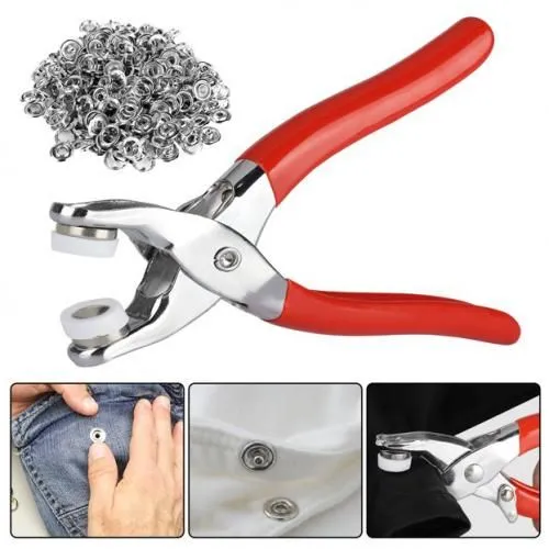 Metal Silver Snap Button Set (100 Pcs, 9.5mm) with Hand Pliers