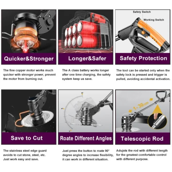 ব্যাটারি চালিত এই কর্ডলেস গ্রাস কাটার মেশিনটি এক কথায় ঝামেলামুক্ত ও শক্তিশালী।