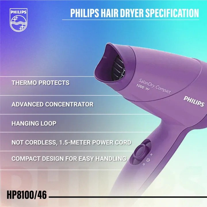 Philips HP8100/46 Hair Dryer – 1000 Watts – Purple