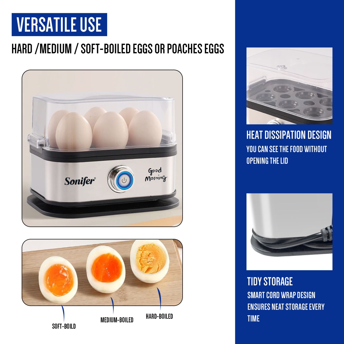 ব্যস্ত সকালে ডিম সিদ্ধ করতে আর ঝামেলা নয়! Sonifer SF-1510 Mini Egg Cooker দিয়ে মাত্র কয়েক মিনিটেই পেয়ে যান সমানভাবে সিদ্ধ, সুস্বাদু ও স্বাস্থ্যকর ডিম — তাও এক ক্লিকেই!